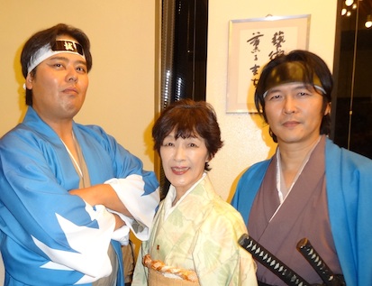 7月から芝居の稽古が始まりました。 彦五郎、ノブ、佐藤俊宣、土方歳三、近藤勇、井上源三郎、島田魁、野村利三郎、相馬主計、安富才助、市村鉄之助、笹間金八郎、榎本武揚、甲賀源吾、大塚波次郎、板垣退助、山地忠七、谷神兵衛、大和屋友次郎、凪、いさり、よいそ、りん 等が、多摩、箱館のシーンを彩ります。 大村氏、大畑氏のプロの演技指導を受け、役柄・個性を生かした台詞にどんどん変えていきますので、覚えるほうも大変です。 彦五郎役の神さんの演技は、さすがプロの役者さんで、その迫力に圧倒されてしまいます。 また、東征軍役の若い方々に私がせめられるシーンなどは、あまりの迫力に思わず涙が出てしまいました。 皆さん、本当に熱の入った稽古をしています! 立ち回りの稽古では、ひとつ間違えば怪我に繋がってしまいますので、真剣に繰り返し繰り返し刀さばきが行われました。 (気合いの入った立ち回り稽古) (私は、彦五郎とノブを助ける役です) チケットは佐藤彦五郎新選組資料館でも販売いたしますので、お問合せ等は、 メール hiko56-shinsen@jcom.zaq.ne.jp 電 話 042−581−0370まで チケット代金:1980円、中・高校生1000円、小学生以下 無料 |