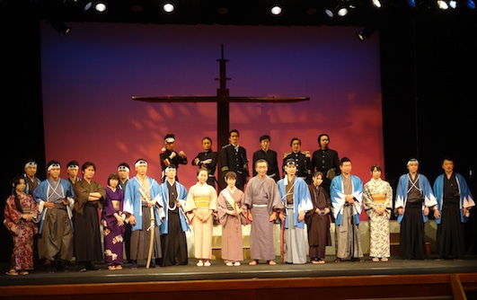 一昨年、昨年に引き続き、今回は三部作の完結編!「北の果ての理想郷」が、8/29(土)19時〜、30(日)12時〜、16時〜の三回、上演されます。 過去2回の公演が、あまりにも素晴らしく、感激したため、今回、制作過程、練習風景を是非見てみたいとお願いしたところ、演出の大村氏や制作の大畑氏から三部作最後のこの完結編を、一緒に作り上げてみませんか?との有り難いお言葉をいただきました。 全くの素人ですので、彦五郎宅の使用人Aの役なら・・・とお話しいたしました。 6月から芝居の稽古が始まりましたが、私の配役はなんと?!・・・ 台詞も多少ございます。 今回の物語は 「慶応4年1月。鳥羽伏見の戦いで明治政府軍との戦いに破れた新選組は崩壊し、副長土方歳三は新天地、箱館を目指す。そして、その身を案じる日野宿名主、佐藤彦五郎自身にも追ってが迫っていく・・・!」 という内容です。 稽古に参加し共に作っていきながらも、皆さんのそのひた向きな姿勢に感激しています。 素晴らしい作品が少しずつ形になっていく過程が見えます。 新選組ファンの方は勿論、今まであまり描かれなかった多摩・郷土における新選組、またお芝居に興味のある方にもお薦めの演劇です。 是非、たくさんの皆さんに観ていただきたいと思います。 会場:七生公会堂(京王線高幡不動駅から徒歩約8分) 8/29(土)18:30開場、19:00開演 8/30(日)11:30開場、12:00開演 15:30開場、16:00開演 チケット:1980円(中学生・高校生1000円/小学生以下無料) チケット・お問合せ・・・代表 大村:090-7813-8261 または制作 大畑:090-1854-8216 |