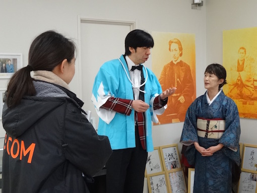 J:COMチャンネル日野の番組収録ロケがありました。 5月13日(土)14日(日)に第20回「ひの新選組まつり」が開催されますが、 それに先立って、「ひののソコんとこ調べておいて」という番組で、日野宿本陣と当資料館が紹介されます。 「ととのいました!」でお馴染みのねづっちさんが、進行をされる番組です。 最初に午前10時から日野宿本陣でロケが行われましたが、ひの新選組まつりの実行委員長・三浦盛好さんが、ねづっちさんをご案内されました。 お昼を挟んで、午後1時にねづっちさんが、当資料館においでになり、私が資料の説明をさせていただきました。 ねづっちさんは、日野の出身であり、旧家・根津家のご子孫です。 大変聡明な方で、最後に「なぞかけ」をすることに! 私がお題を提示したのですが、本当にその場でととのえてしまうのには、びっくりでした。 どんな「なぞかけ」で、ととのえたかは、是非、番組をご覧くださいませ。 4月の一ヶ月間、毎日 9:00〜、12:00〜、20:00〜の放送となります。 動画はYouTubeでも公開されます。 ねづっちさんは長身(182cm)のため、私がずいぶん小さく映っているはずです(笑) (左から、ねづっちさん、私、J:COM櫻井アナ) PR |