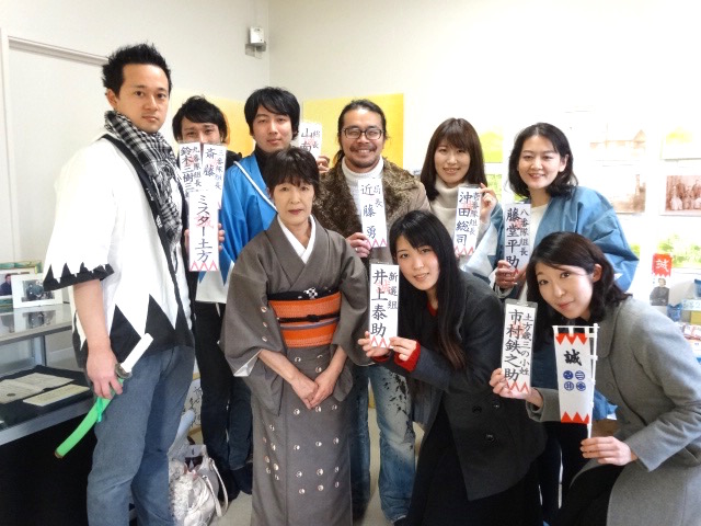 ひの新選組まつりで最も華やかな、隊士パレードに参加された隊士の皆様が、ご挨拶方々、見学されました。 当資料館にもよくお出でいただいている中野さん(藤堂平助)を始め、ミスター土方歳三、近藤勇、沖田総司、山南敬助、斎藤一、市村鉄之助、井上泰助の隊士の皆さんです。 どの方も立派に隊士役を務めて下さいました。 まつり初日の隊士コンテストでは、毎年審査員をさせていただいておりますが、皆様の迫力あるパフォーマンスには感心するばかりです。 また今年の隊士コンテストにも、参加されるとのことです。 5月13日(土)14日(日)の「ひの新選組まつり」は、今回がちょうど20回目となりますので、今まで以上に盛り上がるに違いありません。 PR |