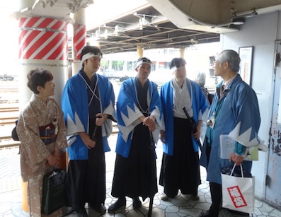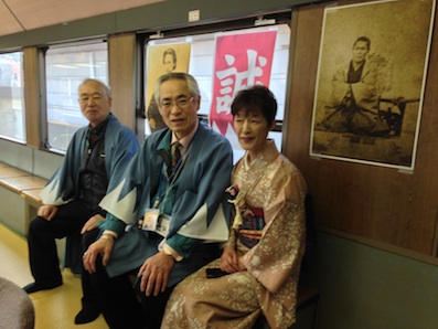 江戸時代幕末に活躍した「新選組」。 近藤勇や土方歳三の生誕地である多摩から、戊辰戦争の舞台となった会津へ..... お座敷列車で行く特別ツアー 「新選組ゆかりの地を訪ねる旅」に行って参りました。 ご参加の皆さまと過ごした2日間、お天気にも恵まれ、とても楽しい思い出となりました。 ありがとうございました。 新選組ファンを乗せた豪華臨時列車は前代未聞かと思います。 出発は八王子駅と立川駅から乗車となりますが、 ひの新選組まつりのPRを兼ね、駅長さん、中澤様、またひの新選組まつり実行委員会の小松様を始め、日野市職員の皆さまが新選組の法被姿でお見送りくださり、旅のはじまりを盛り上げていただきました。ありがとうございました。 また特別な路線を使用したりと貴重な体験ができ、お得感たっぷりの幕開けとなりました。 (お座敷列車内) (列車内放送でのご挨拶は初めての体験でした) 列車内では、日野市新選組ガイドの会会長の芹川氏による、新選組にまつわる歴史語りを聞きながらのレクチャーが、入れ替え制で行われました。 (レクチャーをされた芹川氏[真ん中]、ガイドの柳沢氏) 宇都宮を過ぎて、昼食のお弁当とお茶が出ましたが、会津の郷土食も盛り込まれた特製幕の内弁当に満足いたしました。 (列車内にある特別室で講演の準備などをして過ごしました) 列車は会津の手前、須賀川駅に着き、ここからはバスで途中下車しながら会津に向かいます。 観音寺川では、両岸160本の満開の桜が出迎えてくれました。 続いて、五色沼では雪の壁。 (五色沼で回遊している♡模様の伝説の鯉にめぐりあうと幸せになれる、若いふたりは結ばれるとあり、それにちなんだコイヤキが名物です) 裏磐梯は、まだ雪が残っているので、宿泊先のホテルでは、スキー、スノボ客でにぎわっていました。ゴールデンウイークまで楽しめるそうです。 ホテルでの夕食を済ませ、20時から講演会を致しましたが、 新選組と彦五郎の関わり、新選組隊士や歳三の裏話をさせていただきました。 熱心に聞いてくださり、ありがとうございました。 皆さま、朝も早かったので、さぞお疲れになったことと存じます。 無事、一日目終了となりました。 PR |