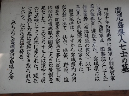 たしかに緑が多いという実感がありました。 有名どころでは、伊達政宗像、仙台城(青葉城)、広瀬川、東北大学というところでしょうか。 土方歳三も北上の途中、この地を踏んでおりますが、 山南啓助は、陸奥国仙台藩出身という説があり、 天保4年仙台藩江戸蔵屋敷に勤める仙台藩士山南某の次男として生まれ、文武両道にして北辰一刀流、千葉周作の門人で免許を取るまでに至ったという、永倉新八等の話が残されています。 仙台でも「山南」を「やまなみ」という呼び方はないそうですが、「サンナン」と日野宿の人たちは呼んでいました。 本人も「三南」や「三男」と署名していることから、「サンナン」であったのだろうと思います。 さて、そんな仙台ですが、 るーぷるバスという、仙台市内中心部の観光スポットを巡るレトロ調なバスがあります。 どこからでも乗り降り自由で乗り放題という便利なバスです。 一日乗車券を購入して、 仙台の魅力を味わうべく出発しました。 最初に訪れたのが、伊達政宗公の霊廟「瑞鳳殿」。 伊達正宗の遺言によって、没後、第二代藩主・伊達忠宗この場所に埋葬されたそうです。 すこし小高い丘のような場所にあるので、長い坂道や階段を登っていきますが、途中、無料貸し出しの杖がありました。 伊達家の家紋といえば「竹に雀」の紋ですが、豊臣秀吉から拝領したという十六葉菊紋も使われていたようです。 明治以降、菊の御紋は天皇家のみの紋になったそうです。 この豪華絢爛な廟の地下に伊達政宗が眠っています。 日光東照宮のような凝った細工が美しい建築物ですが、国宝指定だった当時の建物は昭和20年7月の空襲で焼失してしまい、現存するのは昭和54年に再建されたものだそうです。 瑞鳳殿資料館では副葬品、遺骨調査資料、遺骨を元に復元された三藩主の姿像が展示されています。また館内の一画では発掘調査の模様を上映していました。 瑞鳳殿の坂道の途中に瑞鳳寺がありますが、「鹿児島県人7人の墓」の看板がありました。 ここには、西南戦争で敗れた西郷軍が、国事犯として全国の監獄に護送され、ここ仙台にも305人が収容されましたが、その中の13名が病死し、6名が遺族に引き取られ、残る7人が埋葬されていますという説明がありました。 七士が眠る墓。 次に向かった仙台市博物館は、仙台城三の丸跡に昭和36年に開館。昭和26年に仙台伊達家から寄贈された資料、約1000点が展示されています。 仙台城趾へ。 仙台城趾からの市内。当時、城から城下町が一望できたのでしょう。 将軍家康より25歳下の正宗は、従順を示すため、 あえて天守閣は設けなかったそうです。 ここには、あの有名な伊達政宗騎馬像があります。 伊達政宗というと独眼竜のイメージがありますが、本人の遺言により像や肖像画には両目が入れられているそうです。この騎馬像もしかり。 この騎馬像辺りが、土方歳三が伊達慶邦に拝謁した所なんですね。 杜の都・仙台も素敵なところでした。 PR |