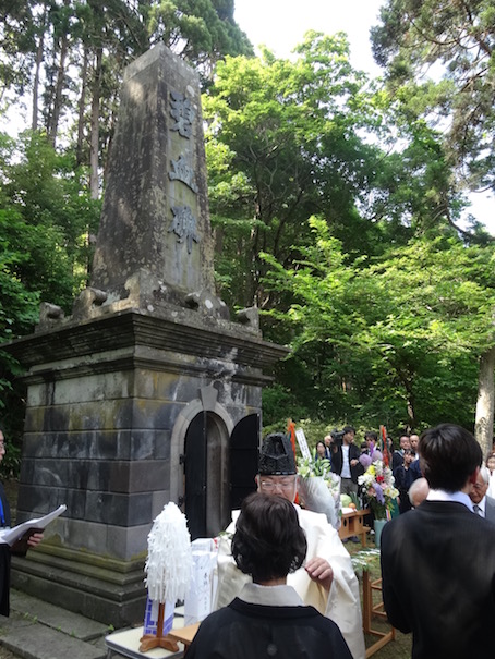 箱館戦争と碧血碑(碧玉の志士たちの150回忌) 「八百の 夏星の待つ 蝦夷の旅 ふう車(佐藤福子)」 碧血碑前慰霊祭に副館長とともに参りました。 今回は、福子倶楽部会員の2名と同行で、レンタカーを借りてくださっていたので、移動が本当に助かりました。 碧血碑前受付で、白鳥さんとお姉様の平澤さん、榎本隆充さんにご挨拶した後、碧血碑前に参りますと、いつもと違う棟札に気付きました。 すると、北海道東照宮の大谷宮司様による慰霊が始まり、びっくり致しました。 今までは仏式での法要でしたが、今年は追悼150回忌ということで、碧血碑前では神式、明日、實行寺では仏式という特別な法要が行われるとの事でした。 これは150年ぶりに当時のまま再現された本当に特別な事でした。 私も歳三の子孫でもありますので、遺族として玉串を捧げさせて頂きました。 6月25日(月) 實行寺・本堂にて、150回忌大法要 私は初めて本堂に参り、望月僧侶様による法要に参列いたしました。 2年前、大雨のため、碧血碑前ではなく本堂で行われたということですが、立派な本堂に席が設けられ、昨日に引き続き、榎本さんご家族もおいでで、ご子息様ともご挨拶させて頂きました。 法要後は、五島軒でのトークショー、会食と続き、19時に閉会となりました。 2日間に渡る特別法要に参加出来ました事、函館碧血会の皆様方に改めて御礼申し上げます。 「八百の 魂は夏星 蝦夷の旅 ふう車」 PR 					 |