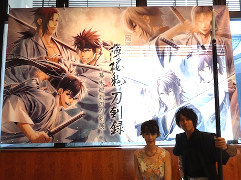 炎天下の中、岡崎城に到着しました。 ご関係者の熱烈歓迎を受けました。 武将隊の本多忠勝殿と。(薄桜鬼では、斎藤一) 薄桜鬼グッズ担当者のオススメはタペストリー。 こちらは沖田総司のタペストリー....だそうです。 昨年は、長船刀剣博物館でお世話になった全日本刀匠会理事・坪内氏と刀匠・川島氏の手入れにより、無事展示(撮影禁止です) 越前康継の展示も無事終了しました。刀掛けはアクリスで見やすい。 会場には、13振りの刀を展示、銃の展示、綿の御旗があり、見応え充分です。 御旗 ▲幕末期、高価なため身分のある者しか所持しえなかった護身用拳銃。 エリーホイットニー社製。 当時、輸入された数は極く少数で、大変希少なものである。 家康館の地下展示場には、家康の生涯が解りやすく説明されていました。 幼少の人質時代と三河武士との繋がりは、とても勉強になりました。 特に「決戦!関ヶ原」のジオラマは迫力があり、必見です。 夜には関係者の皆様方と席を設けて頂き、日野での歳三のエピソード等、歓談いたしました。 PR |