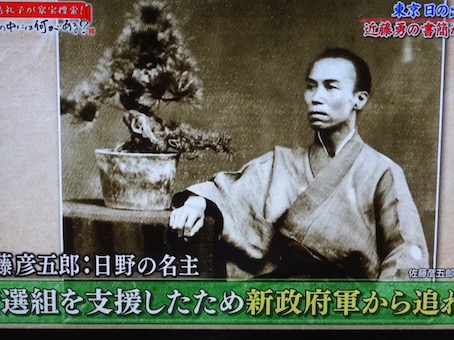 BS TBS「高島礼子が家宝搜索!蔵の中には何がある?」よる9時より、2時間スペシャルで、日の出町大久野村の名家・羽生家(上羽生)が取り上げられ、拝見致しました。 ご先祖が代々守って来られたお宝の品々が、次々と出てきましたが、長時間のロケは、さぞお疲れだったと存じます。 この地域は、豊臣秀吉に小田原を攻撃され、追われた北条家臣らがたどり着いたのがこの大久野村で、羽生一族として住み着いたそうです。 村には蔵がたくさんあり、第二次大戦中には美術品として価値の高い刀なども、疎開して収められたということで、戦後、GHQがやってきたという逸話も残っています。 彦五郎が甲陽鎮撫隊とともに戦った勝沼戦争では、その後、賊軍として追われ、潜んでいたのがこの上羽生家でした。 放送でも、その時に置いていった近藤勇の書簡が登場いたしましたが、羽生謙五さんが、彦五郎がどのような経緯でたどり着き、書簡が残されたことも解説いただき、有り難く存じました。 当時は、幕府側の文書を所持するだけでも危険でしたが、長年、大切に保管くださり、守っていただきました。御礼申し上げます。 今回は、羽生家が2時間スペシャルとして取り上げられました。 PR |