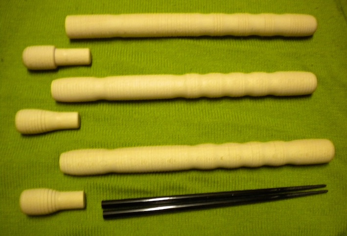 4月21日(日)開館日にお渡しできるよう、制作を急いでおります。 先着順でご予約を承りますので、メールにて、ご住所、お名前を記してお申し込みください。 追って、詳細をお知らせいたします。 メールアドレス d-fab@m2.hinocatv.ne.jp 予定販売価格 4,500円 当資料館にて受渡しいたしますが、郵送も承ります。(別途送料がかかります) 笛の箸入れは試作の段階にも関わらず、多くのご注文ありがとうございます。 販売価格も決まらない理由は職人さん方の手作業によりますので、 どれほどの手間がかかるものか「作ってみないと解らない」の一言でした。 出来上がる工程をご覧下さい。 発案:そば処「ちばい」亭主 谷 享司さん(日野市) 新選組研究の第一人者と言われた故谷春雄氏の長男、日野の郷土史の研究などもしています。 父君が木工の職人さんだった事から、木工や塗装に詳しく職人さんとの打ち合わせに立ち会っていただきました。 また、新選組ファンの間では幻のグッズ「歳三竹」を企画、制作したのも同氏です。 本体制作:渡辺木工挽物所 渡辺雅博さん(八王子市寺町) ネット上で何軒も問合せをし図面を送りましたが、一様にこの様な形状のものはできませんという回答でした。 そのような中、「この電話番号は立川市ですか?」「いいえ、日野市です」 「近いから一回来てみませんか」と誘いを受けました。 デザイン画と龍笛の写真を持って谷さんと二人作業場に着くと、ご本人と強い木の香りが出迎えてくれました。 「最近は、この仕事をやる人が減ってネットに出しておけば仕事はいくらでもあるんですが、難しい仕事や面倒な仕事はやりたがらないんです」と話されました。 打合せ中、「これは難しい」とニコニコする所がやはり職人さん。最後に「来週来てみて」声を聞き作業場を後にしました。そして・・・ とりあえずサンプルを作って下さいました。 削り出してみると直線的では笛らしく見えないとの渡辺さんの判断で、アールを入れて作り直しを繰り返し、 3本のサンプルが出来ました。 薄くなると木が割れてしまい、失敗もあったそうで、職人さんの経験と勘の作業です。 持っていった1枚の写真から、ここまでリアルに出来上がりました。 次回は塗り職人さんの制作工程です。 PR |